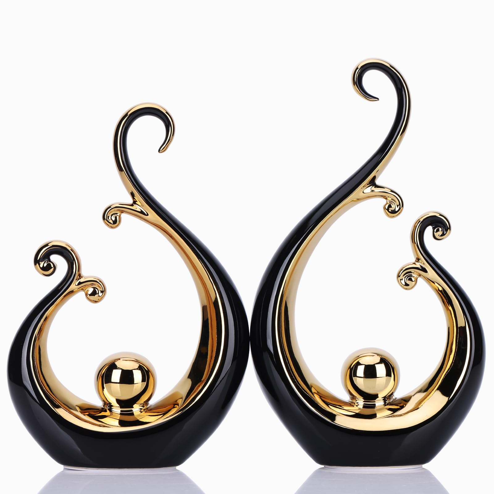 DOVDOV Abstract Ceramic Black Statue 2 Piece Set, Modern Art Black Gold Home Decor, Unique Home Decor, Coffee Table Bookshelf Room Shelf Coffee Table