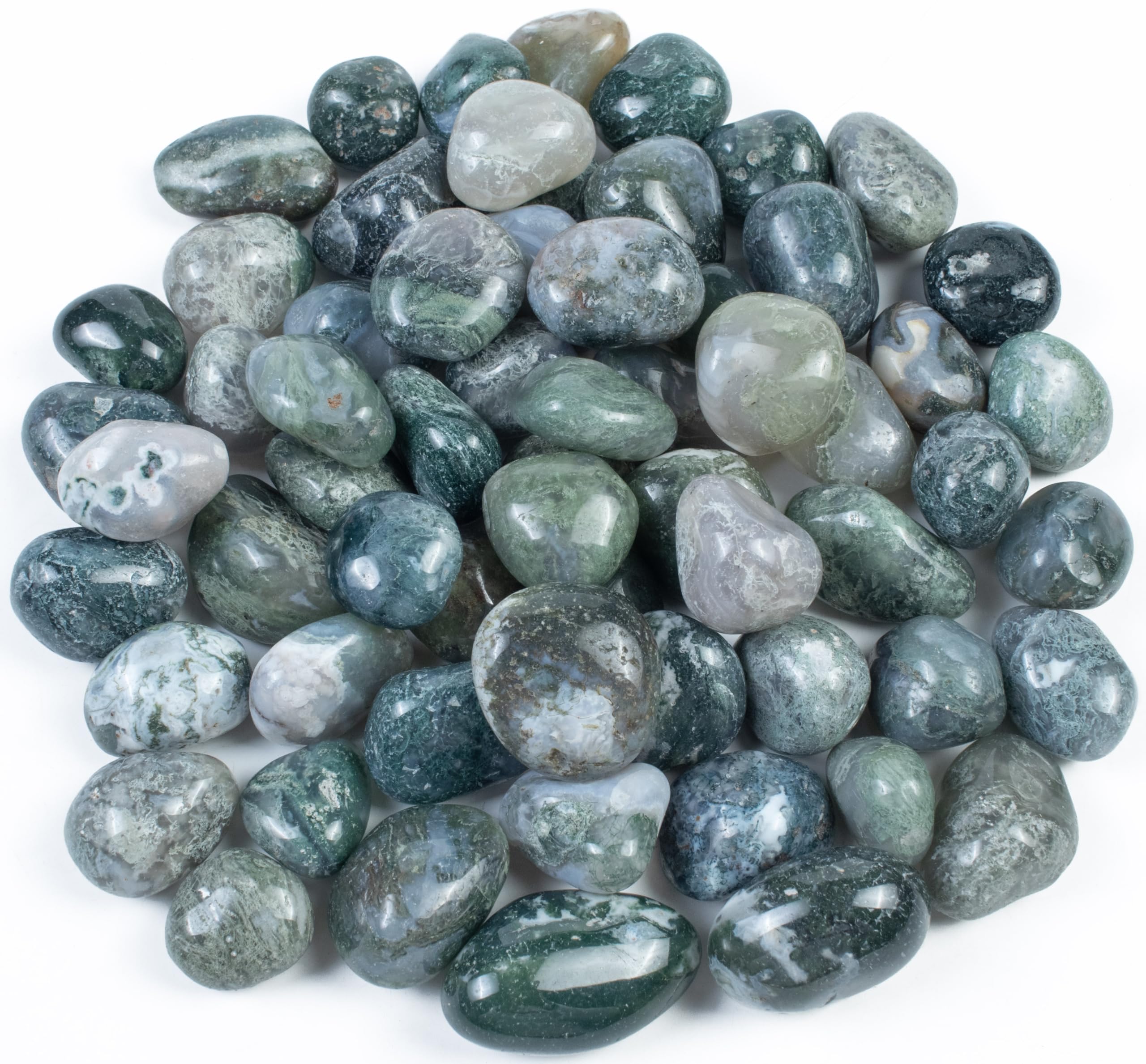 BEZAVO Moss Agate Tumbled Stones - 1lb Bulk Polished Crystals for Vase Filler, Fountain Rocks, Healing Reiki Gemstones, Good Luck, Home Decor Gifts,