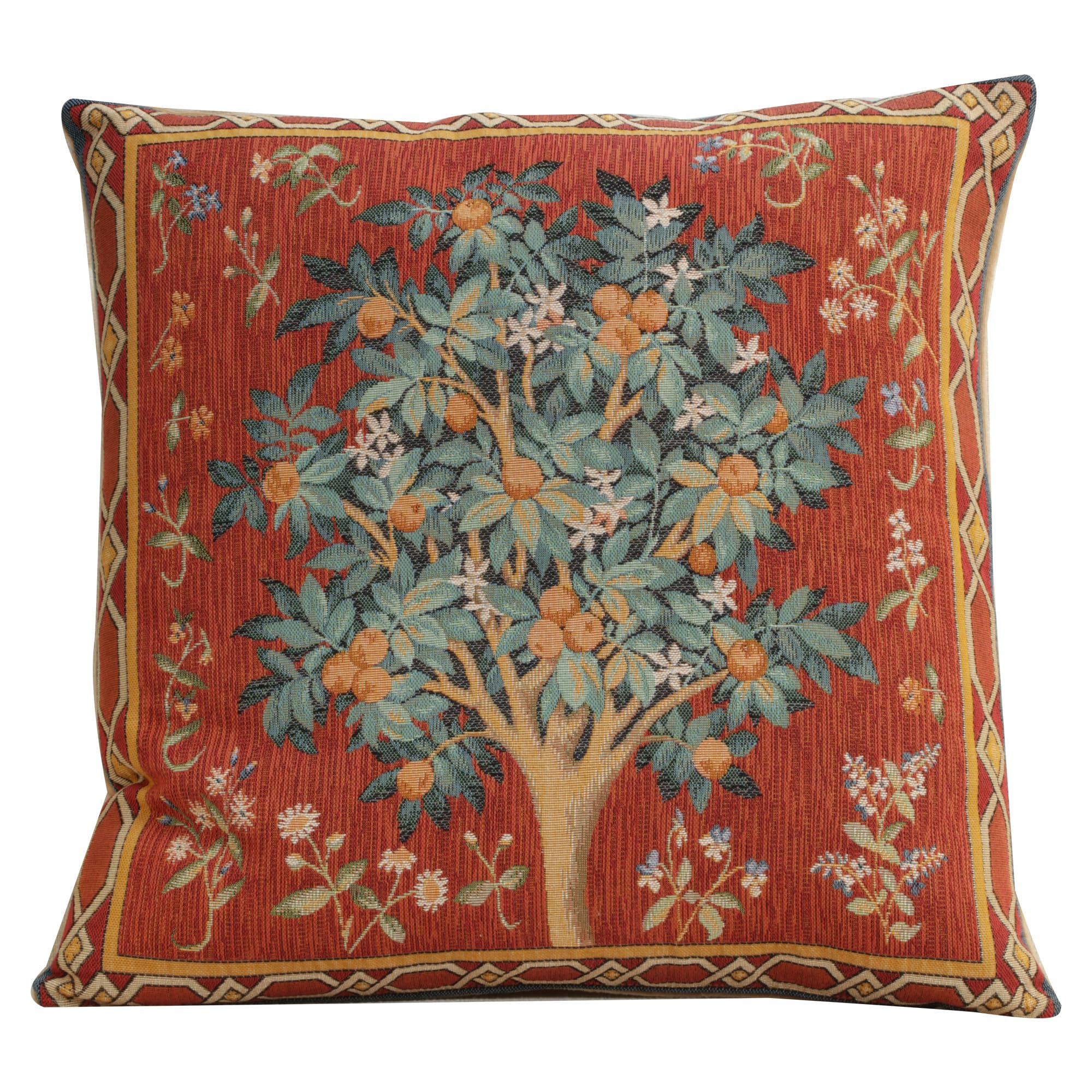 Charlotte Home Furnishings Throw Pillow Covers for Couch 14X14 in Orange Tree Decorative Pillow Covers for Bed Small Tapestry Sofa Pillow Covers for