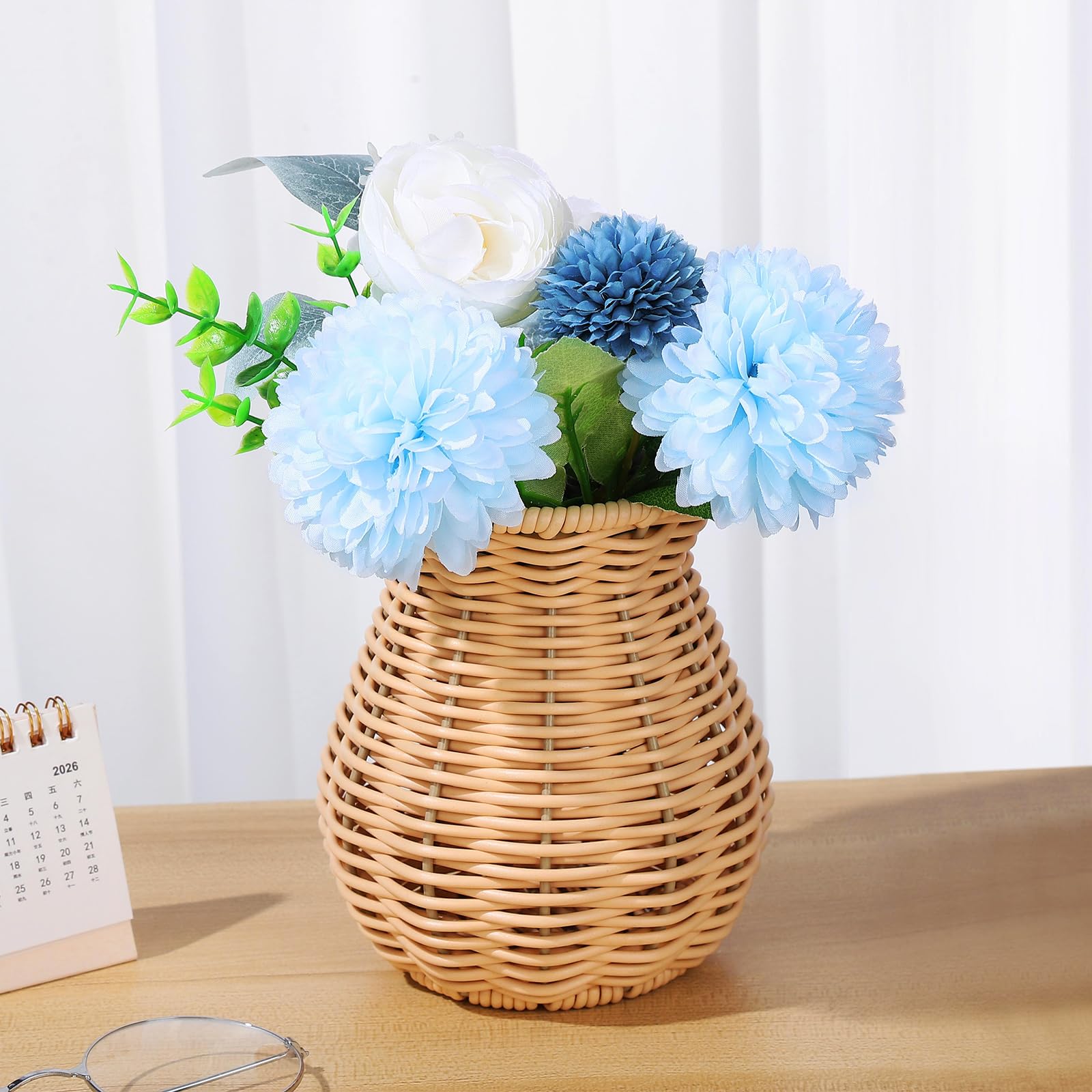 Decorative Vase Hand Woven Plastic Rustic Flower Vase for Home Decoration Farmhouse Style Beige Floral Centerpiece for Table and Cabinet