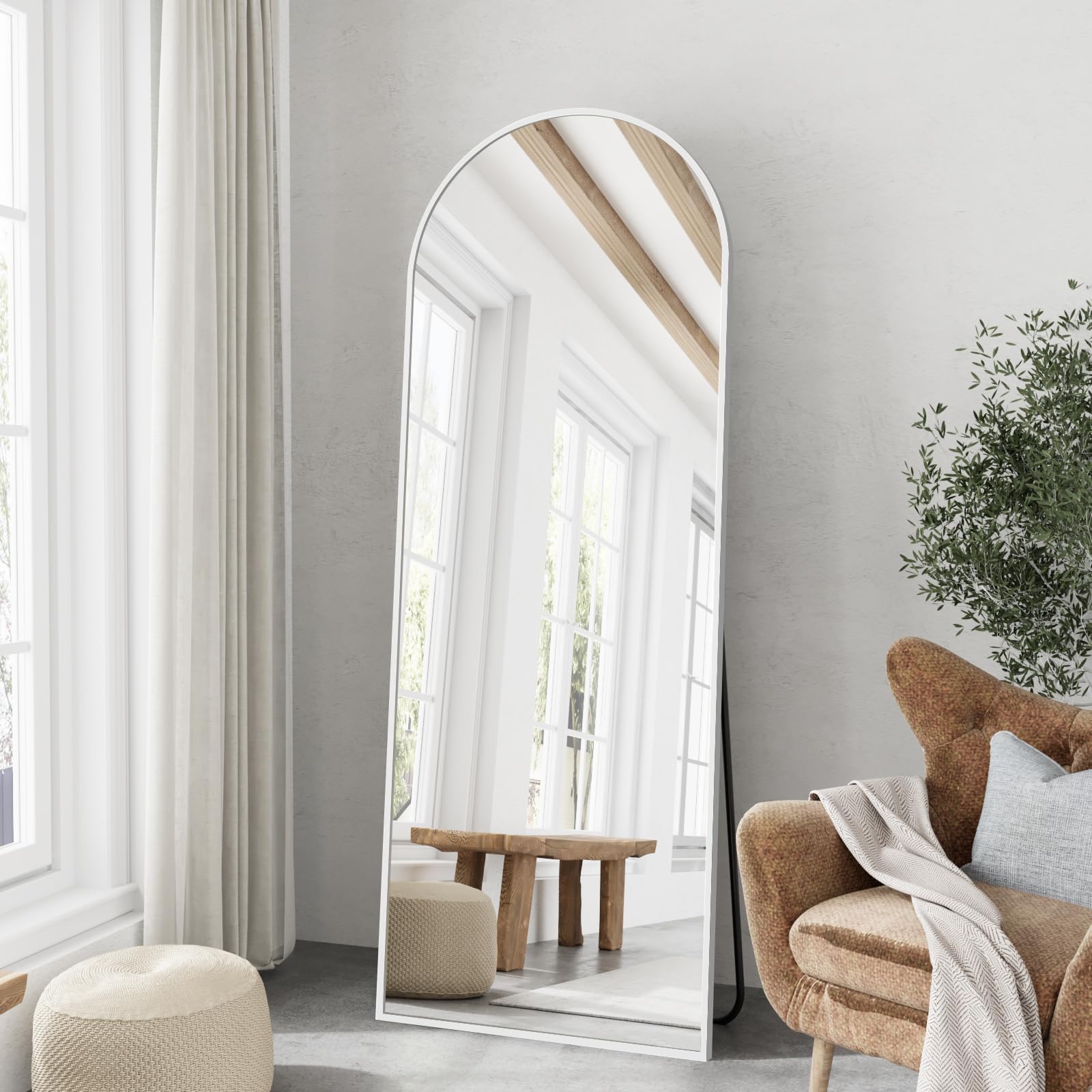 【Arched-Top Design】Arched floor mirror is designed with an arched top frame. The mirror is surrounded by an aluminum alloy frame.The frame is very thin,brushed, and more textured. It is very conspicuous in any space and makes your room look tasteful 【Full Size Mirror】Full Length Mirror size