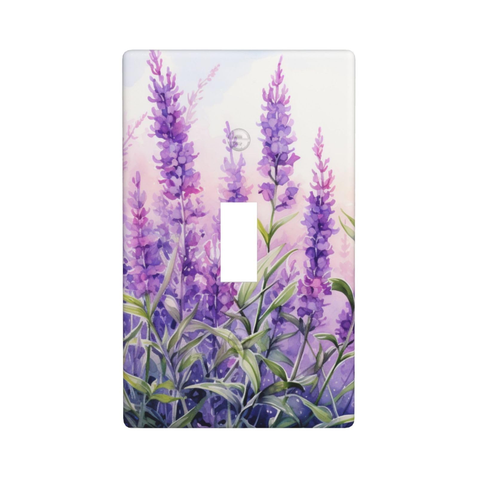 Decorative Wall Plate Purple Lavender Flower Watercolor Switch Cover Single Gang Toggle 4.5 x 2.76 Inch PC Plastic Electrical Receptacle for Home