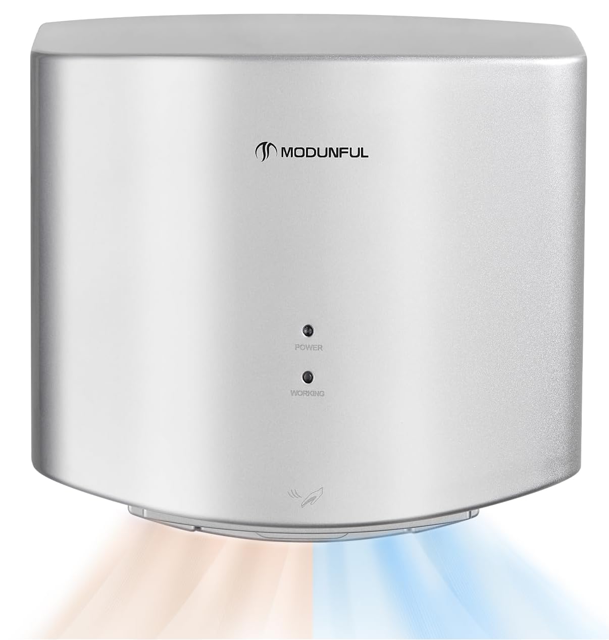 modunful 9-Second Compact Hand Dryer for Home - Super Quiet, Easy Install, Dual Warm/Cold Air, 110V Plug-in, Silver 2008S1