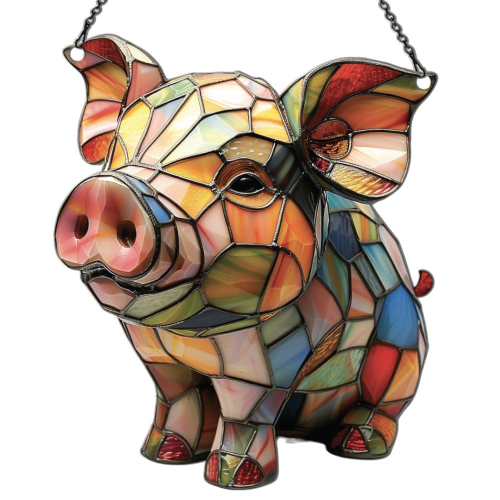 ☘ High-Quality Acrylic Construction️☘: Crafted from durable 3mm thick ACRYLIC (a type of plastic, NOT GLASS) and FLAT. This Pig ornament offers options to fit any decorative need. Each ornament comes with a metal chain, sucker hook, and a decorative box, making it incredibly easy to hang and d