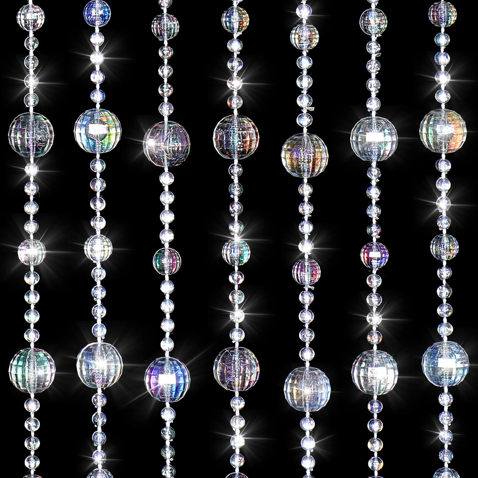 ANMINY 30 Strands Beaded Curtains Doorways 2 Panels Iridescent Crystal Door Beads Curtains High-Density Acrylic Hanging Doorway String Curtains for