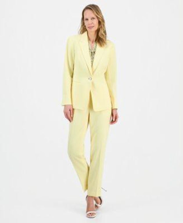 Women's Kasper Stretch Crepe Peak Lapel Jacket Printed Satin Sleeveless Blouse Core Julia Stretch Crepe Mid Rise Pants - Yellow - Casual jackets Tailored to give your work wardrobe an instant, sharp upgrade, this women's peak lapel jacket is a...