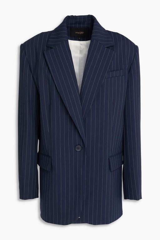 Pinstriped Wool-Blend Twill Blazer - Blue - Maje Jackets