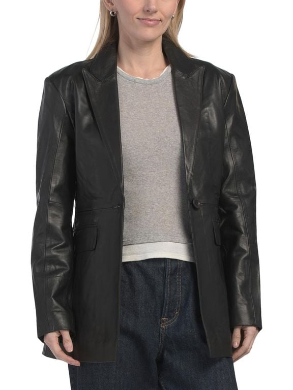 Women's Tj Maxx Leather Auriana Jacket, Polyester/Leather - Black - Casual jackets Fully Lined, Button Cuffs, 1 Coin Pocket, 2 Front Pockets, Back Vent, Padded Shoulders, Hits At Thigh, Mid Weight, Polyester Lining, Notch Collar, Front Button...