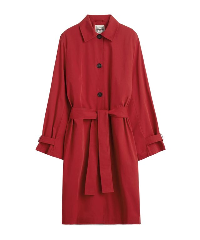 Women's Totême Double-Breasted Trench Coat - Red - Casual jackets Button closure at front, detachable belt, adjustable wrist straps, welt pockets.