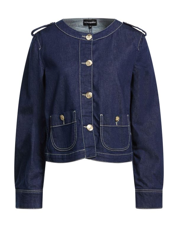 Women's Emporio Armani Denim Outerwear - Blue - Denim jackets Denim jacket Denim Stretchy fabric Solid color Brand logo Dark wash Long sleeves Unlined Machine wash Do not bleach Do not tumble dry