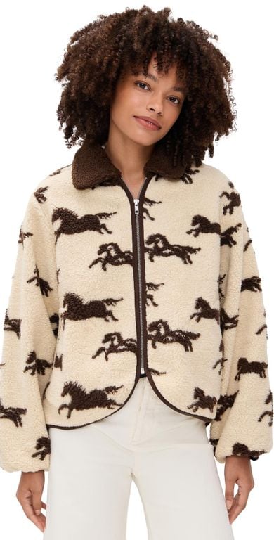 Women's The Great The Pasture Sherpa Jacket - Natural - Casual jackets Fabric: Mid-weight, non-stretch sherpa. Horse pattern. Collared neck. Long sleeves. Zip closure. On-seam hip pockets. Shell: 100% polyester. Unlined. Wash cold. Imported, China....