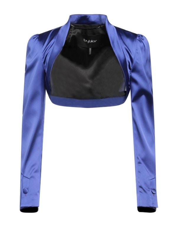 Women's Byblos Blazer - Blue - Formal jackets Satin, no appliqués, solid colour, deep neckline, single-breasted , long sleeves, fully lined, no pockets, stretch, single-breasted jacket. 76% Acetate, 21% Polyamide, 3% Elastane.