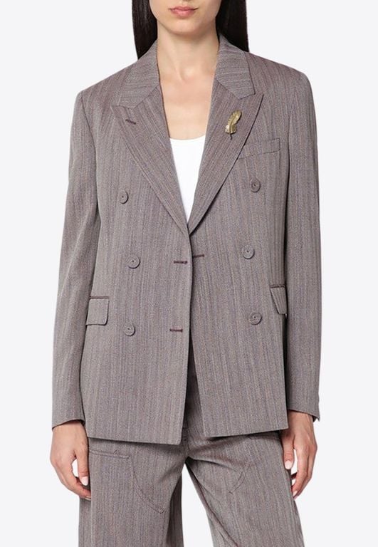 Women's Golden Goose Deluxe Brand Light Double-Breasted Jacket - Gray - Formal jackets Golden Goose Deluxe Brand jacket in light brown chevron pattern wool blend, featuring front button closure, notch lapels, long sleeves with buttoned cuffs, a welt...