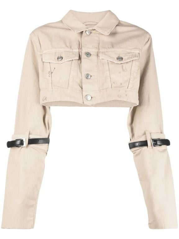 Women's Coperni Cropped Denim Jacket - Natural - Denim jackets Light beige cotton belted sleeves classic collar front button fastening two button-fastening chest pockets cropped Size: 36. Gender: Female. Material:Cotton.