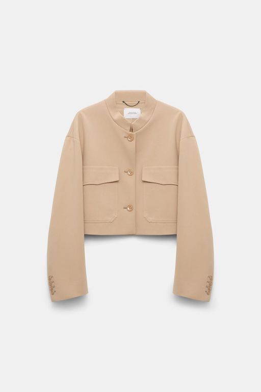 Women's Dorothee Schumacher Cropped Jacket - Natural - Casual jackets Styled in our forever favorite Punto Milano, the cropped jacket features clean lines and a short stand collar. The jacket has flap pockets and can be paired with matching pants...