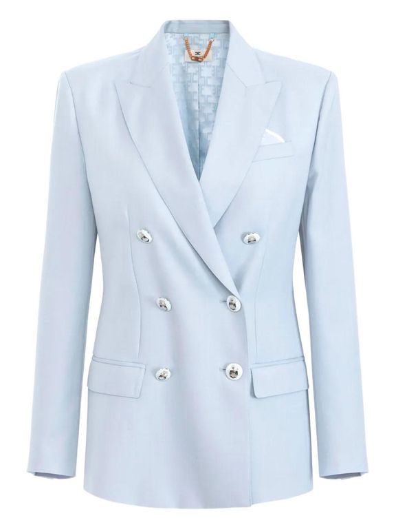 Women's Elisabetta Franchi Double-Breasted Tailored Blazer - Blue - Formal jackets Light blue notched lapel peak pocket metallic button detailing fully lined tailored fit Size: 42. Gender: Female. Material:Polyester/Virgin Wool.