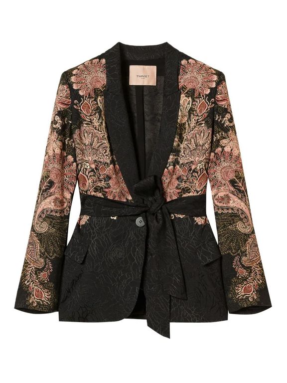 Paisley-Print Belted Blazer - Black - Twinset Jackets