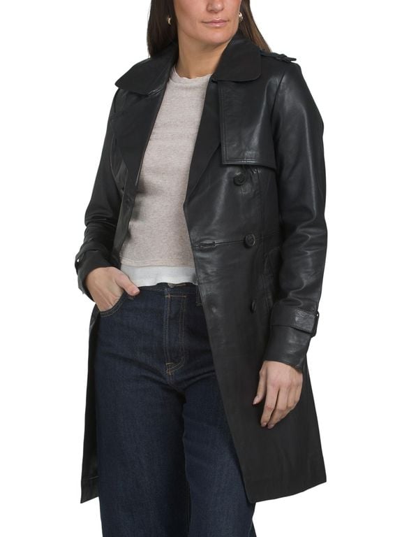 Women's Tj Maxx Leather Laure Jacket, Polyester/Leather - Black - Jackets Fully Lined, Button Cuffs, 2 Side Pockets, 1 Interior Slip Pocket, Back Slit, Shoulder Button Tabs, Smooth Grained Finish, Hits At Knee, Mid Weight, Polyester Lining, Notch...