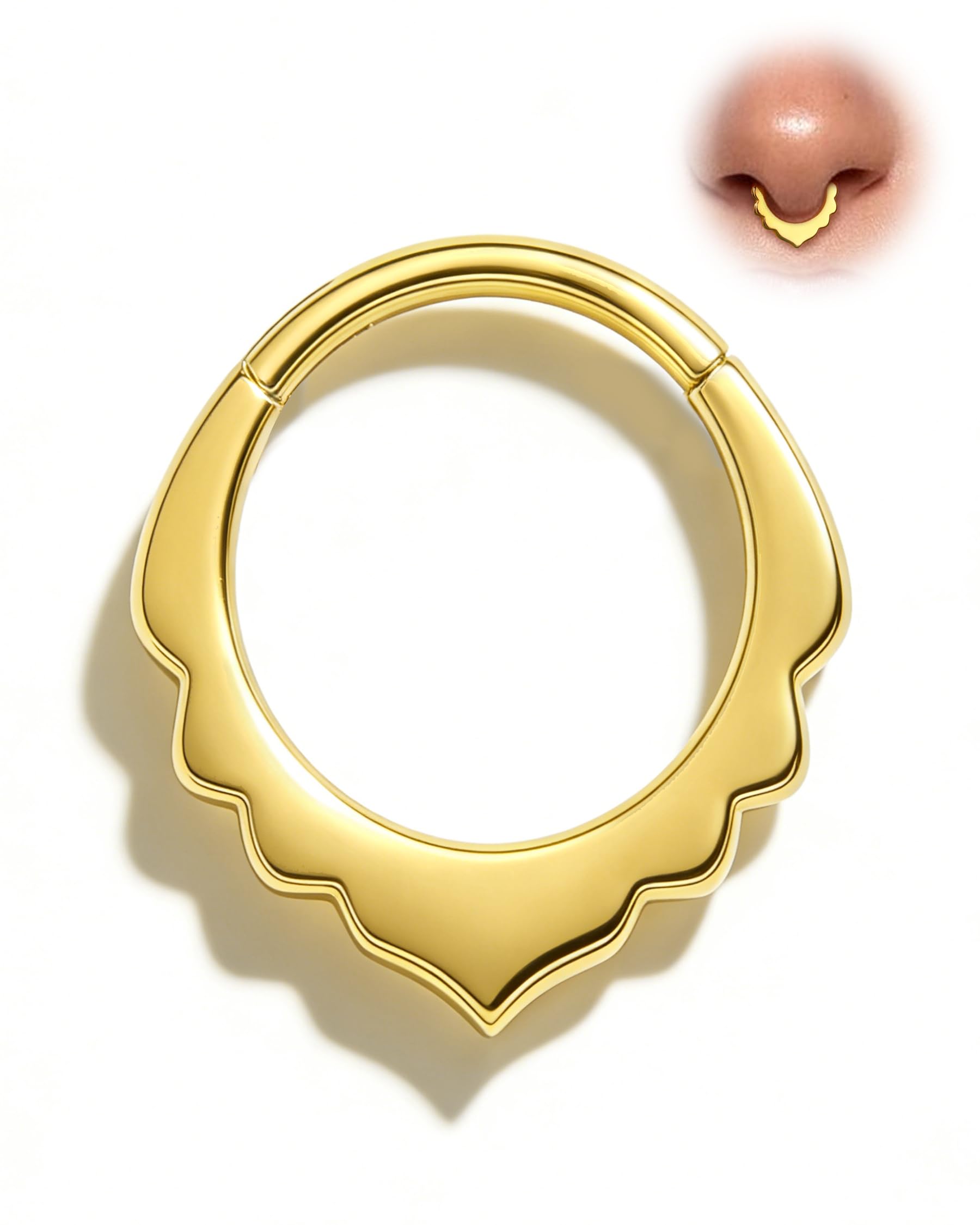 Minimalist V-Shaped Petal Design: This sleek V-shaped petal design adds a subtle yet stylish touch, perfect for septum rings and daith piercing jewelry. Size Options: Available in 16G = 1.2MM with hoop diameters of 8MM or 10MM, ensuring a comfortable fit for your septum or daith piercings. Color Cho