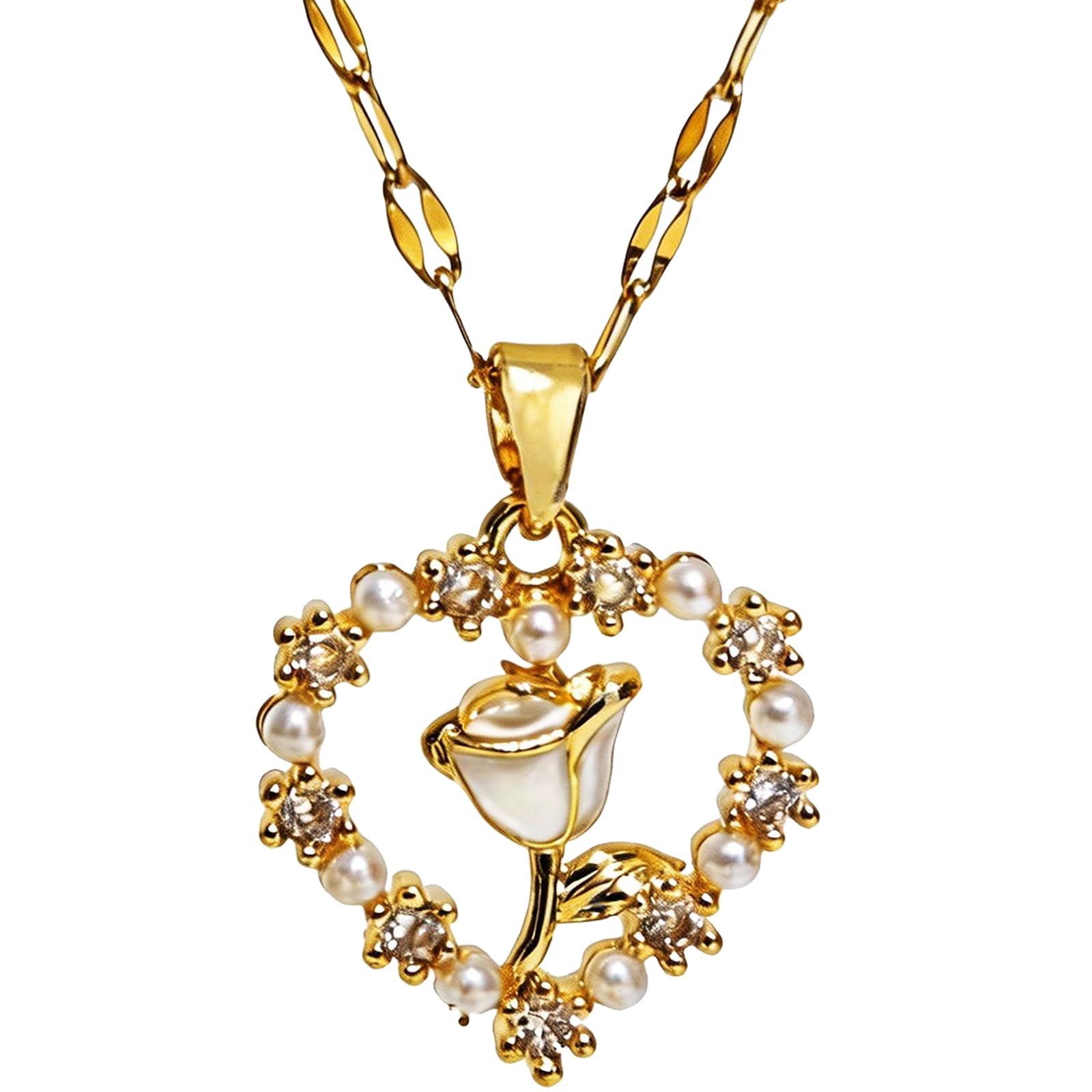 Dainty Gold Heart Necklace for Women White Rose Flower Pearls Heart Charm Pendant Choker Preppy Necklace Collar Unique Western Fashion Jewelry Gift