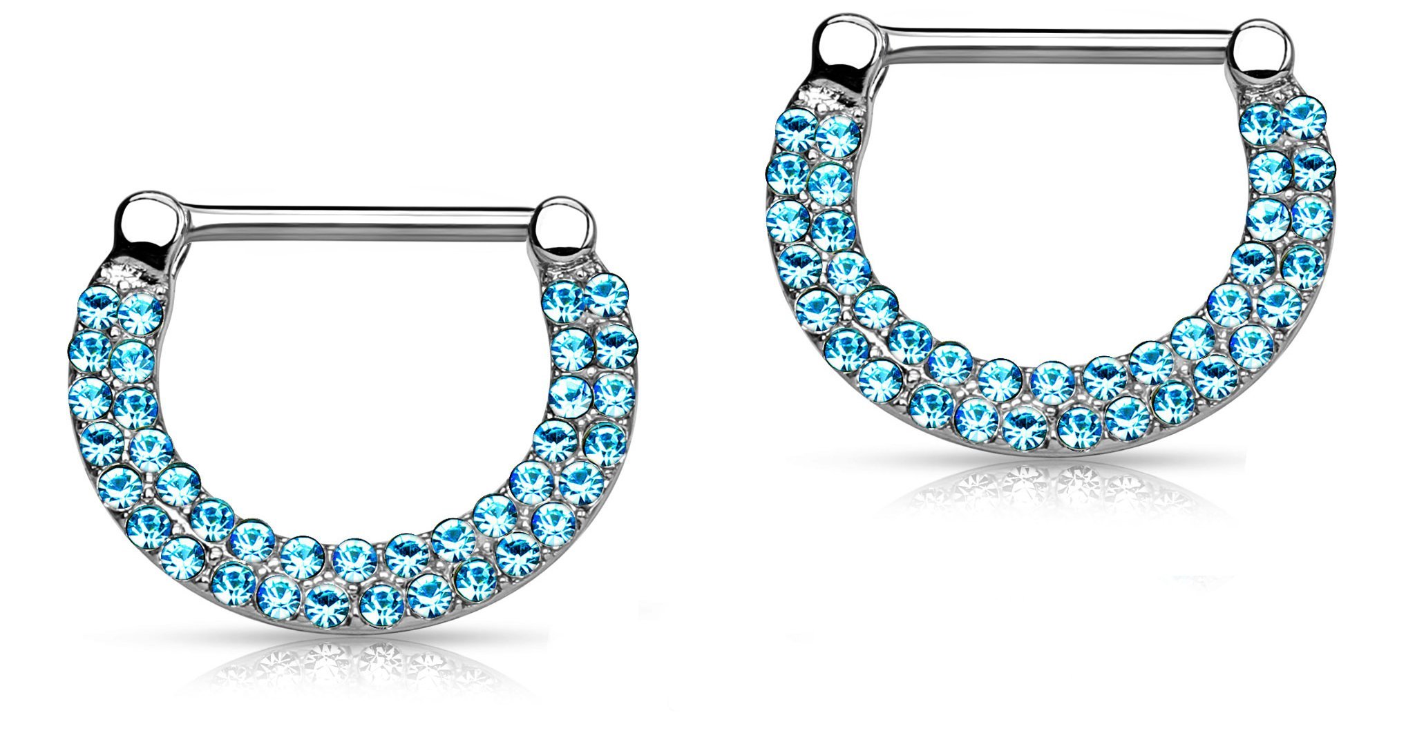 Forbidden Body Jewelry 14G Surgical Steel & Gold IP Plated Double Lined Crystal Gemmed Nipple Piercing Clicker Ring Set