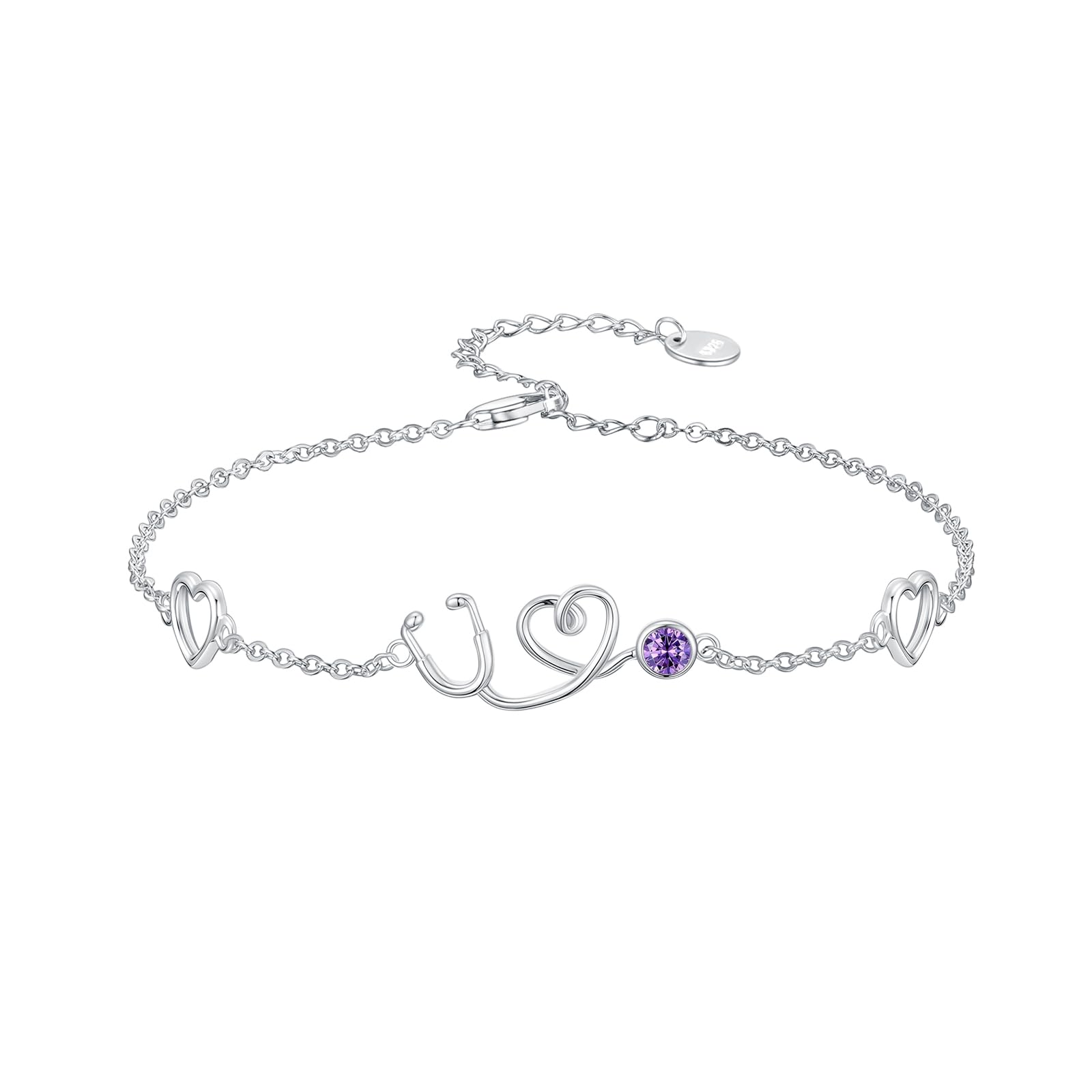 Dorunmo Stethoscope Bracelet 925 Sterling Silver Nurse Stethoscope Bracelet with Birthstone Graduation Jewelry Gifts for Nurse Doctor Medical Student