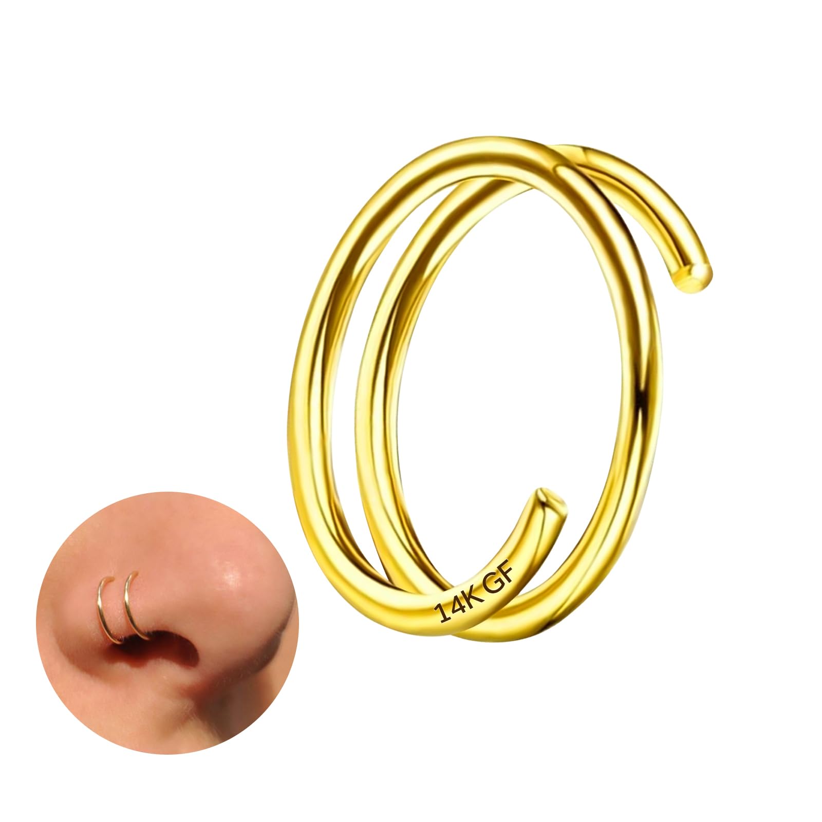 Package: 1 pcs x 14k gold filled 20g nose ring piercing jewelry Nose Ring Size: The 14k gold filled double twist nose rings hoop has 8mm inner diameter, and 20G=0.8mm Material: 1/20 14K Gold Filling, abbreviated as 14K GF, represents 5% of the total weight with gold content. Strong surface hardness,