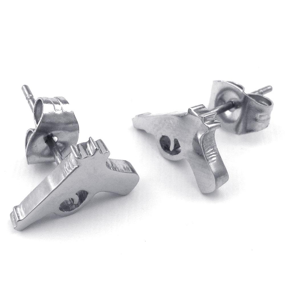 Jonline24h Mens Women Stainless Steel Handgun Gun Pistol Punk Rock Stud Earrings Gothic Jewelry Silver