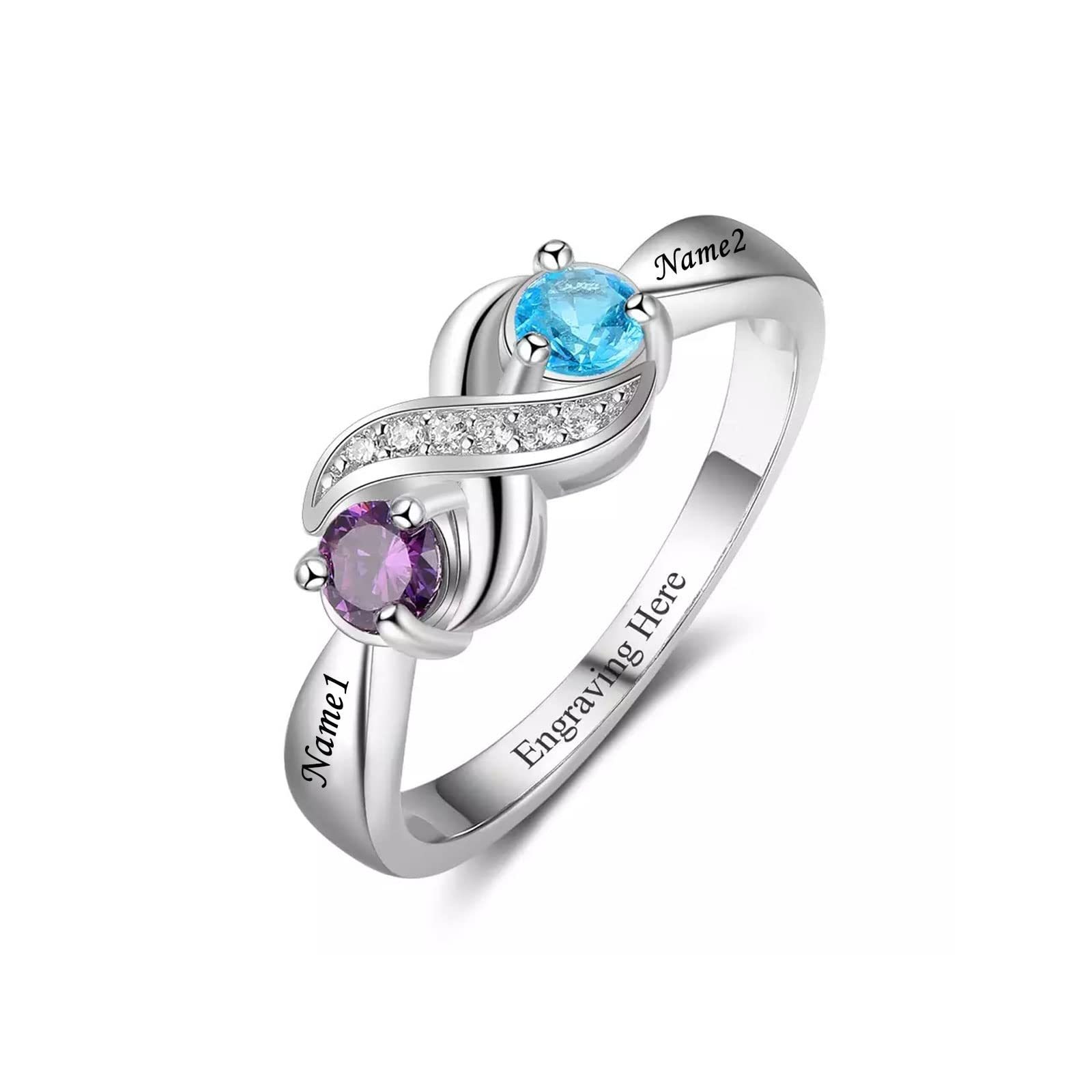 【Lab Diamonds&Shiny Birthstone】: This personalised birthstone ring features real lab white diamonds and beautiful Austrian birthstone, customizable with 2 names and choose 2 birthstone, the combination of diamonds adds a luxurious look to the personalised ring. A special piece of jewelry that yo