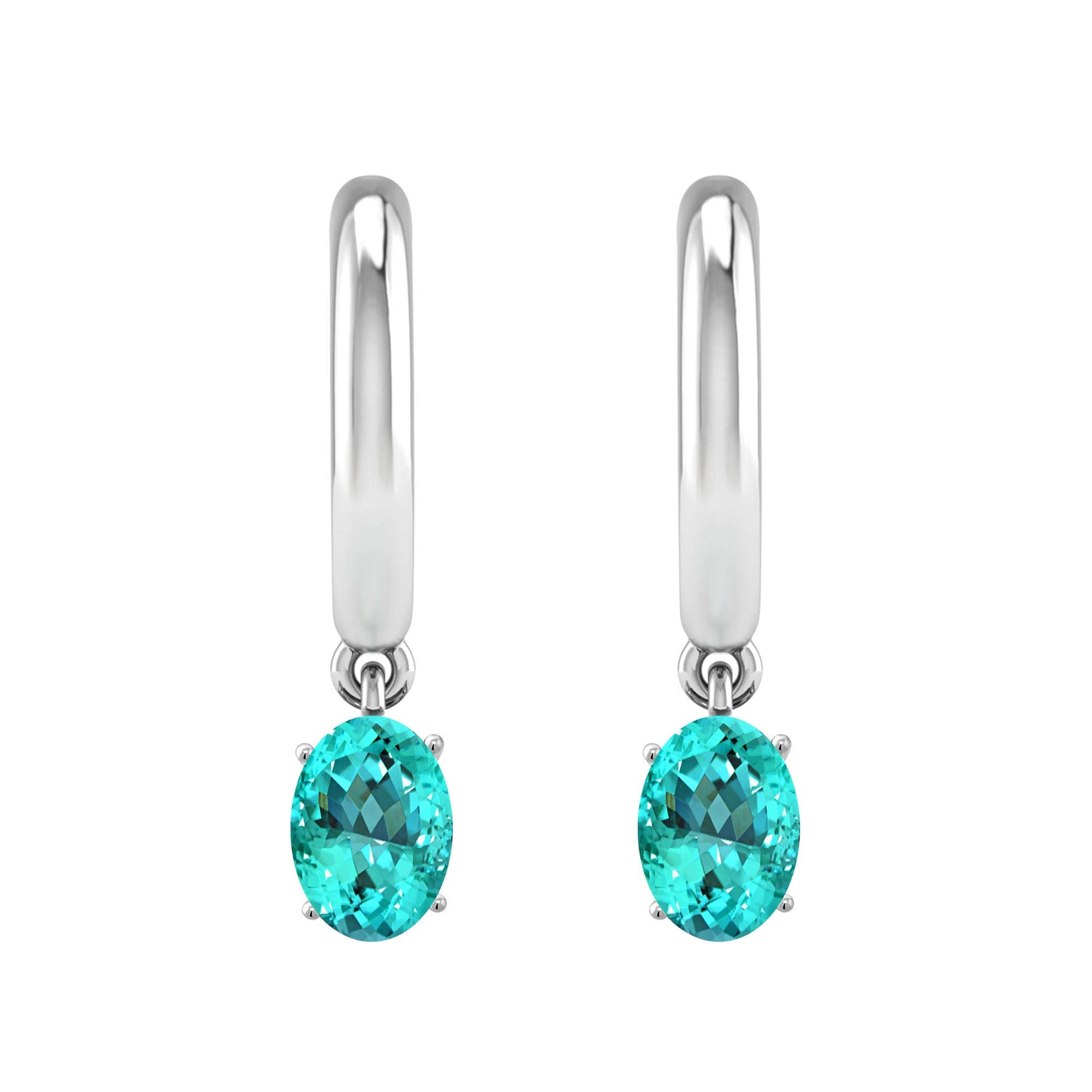 V3 Jewelry Women's 925 Sterling Silver with 1.60 Ct Oval Shape Paraiba Tourmaline Dangling Hoop Earrings