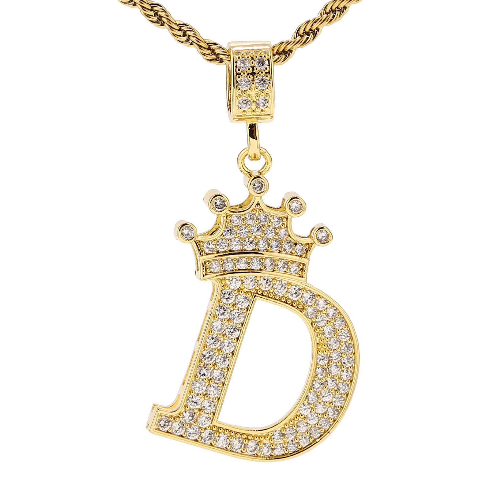 UALGL A-Z Letters Necklace Crown Necklace for Men Women 18K Gold Plated Letters Pendants with 23'' Chain Hip Hop Alphabet Name Jewelry Mom Gifts