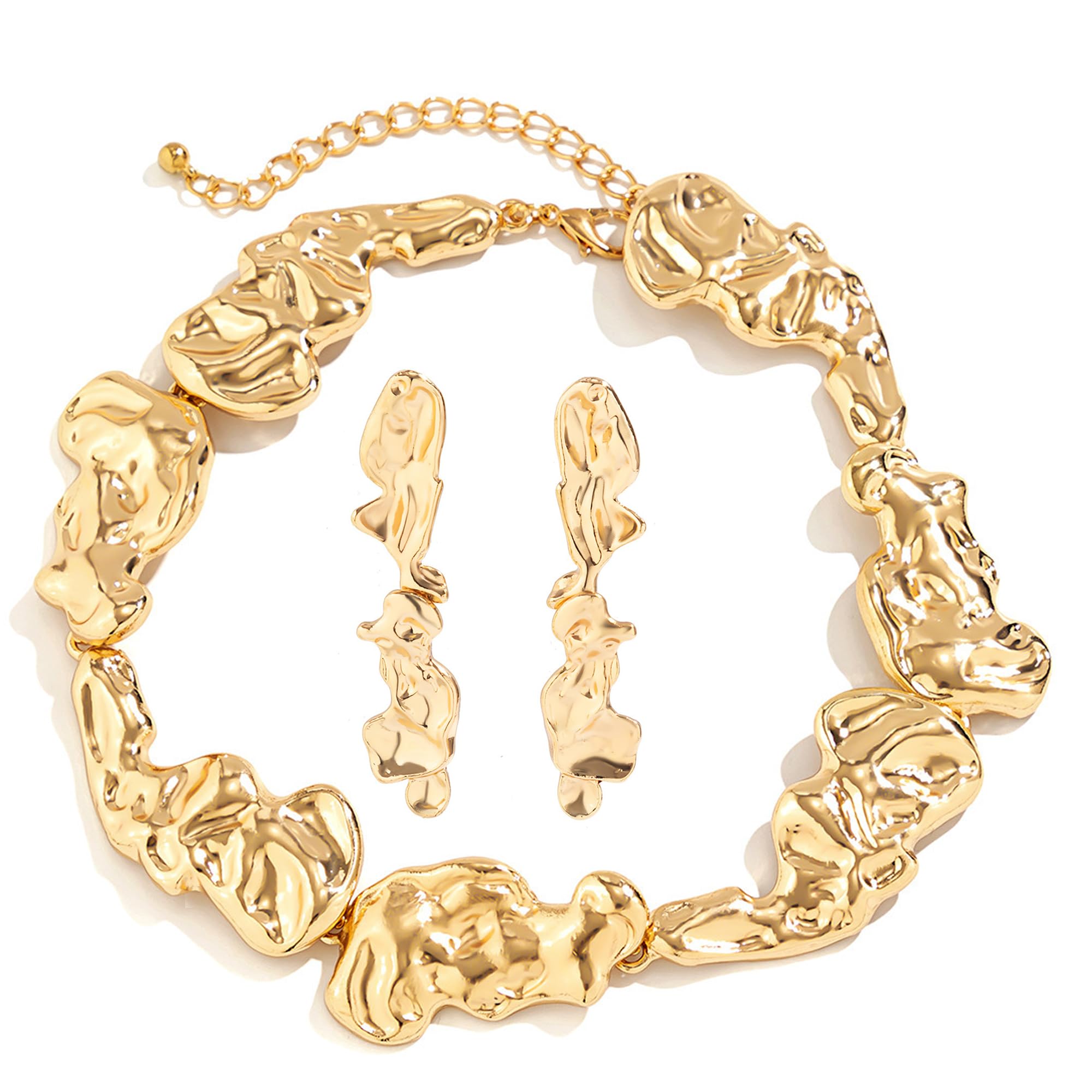 CJIAYUJEW Irregular Lava Gold Necklace Earring Set for Women Statement Choker Necklace Fashion Jewelry Set Liquid Dripping Metal Buckle Collar