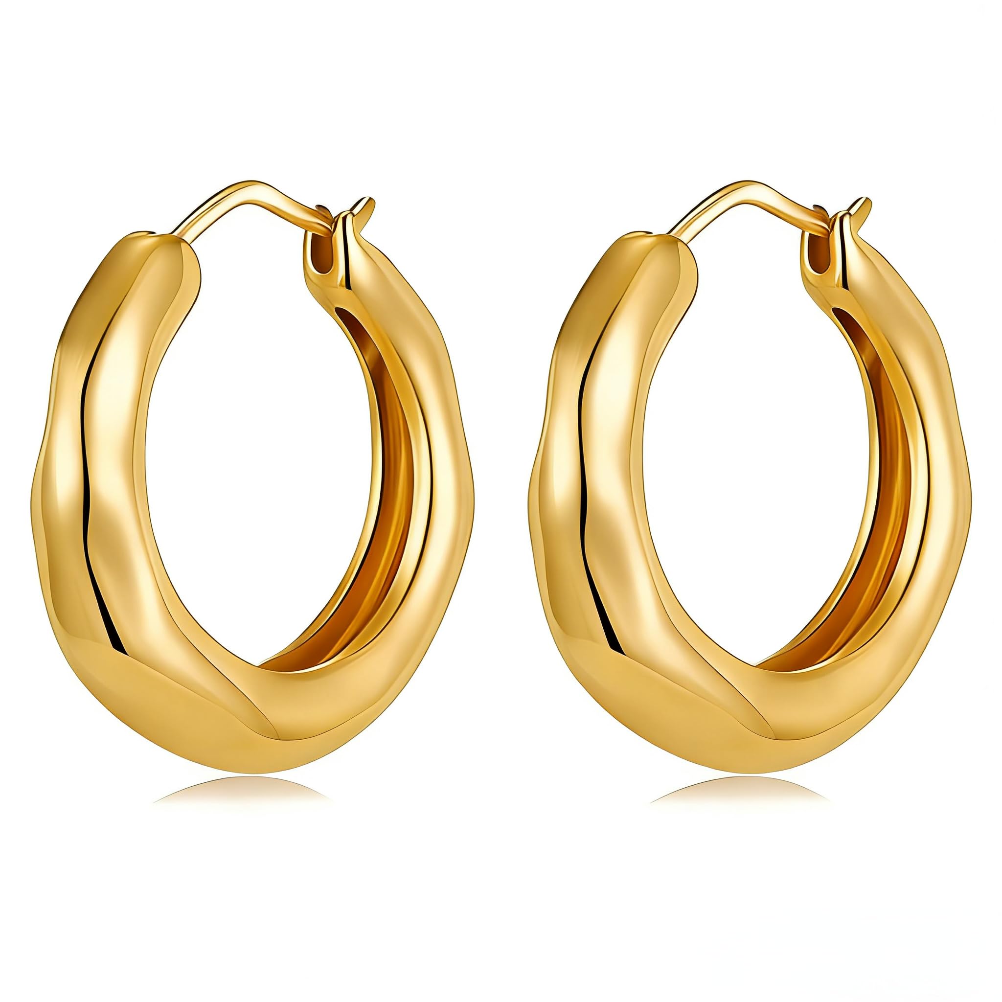 Rippled Wave Design: The 20mm size offers understated elegance. Crafted with a durable base and thick 18K gold plating, featuring a unique rippled wave texture for a luxe, eye-catching finish that catches light beautifully. Exquisitely Vintage Design with Timeless Charm: A versatile staple for daily