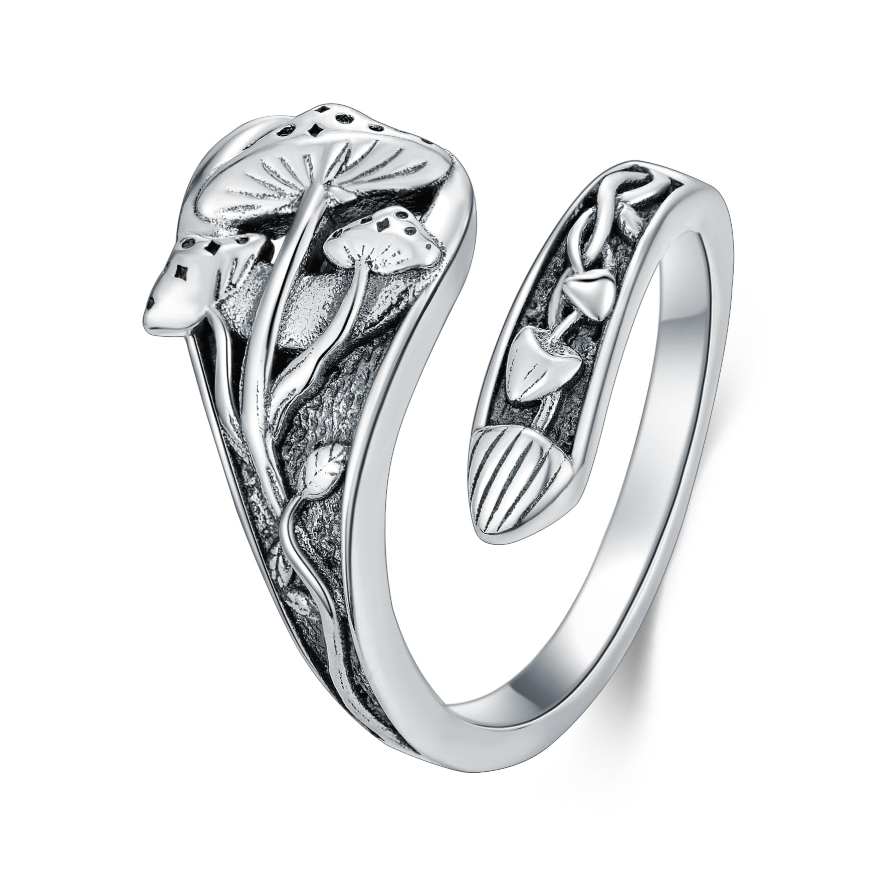 MONGAS Mushroom/Cardinal/Evil Eye/Scorpion/Hummingbird/Phoenix Ring 925 Sterling Silver Spoon Ring Christmas Jewelry Gifts for Women