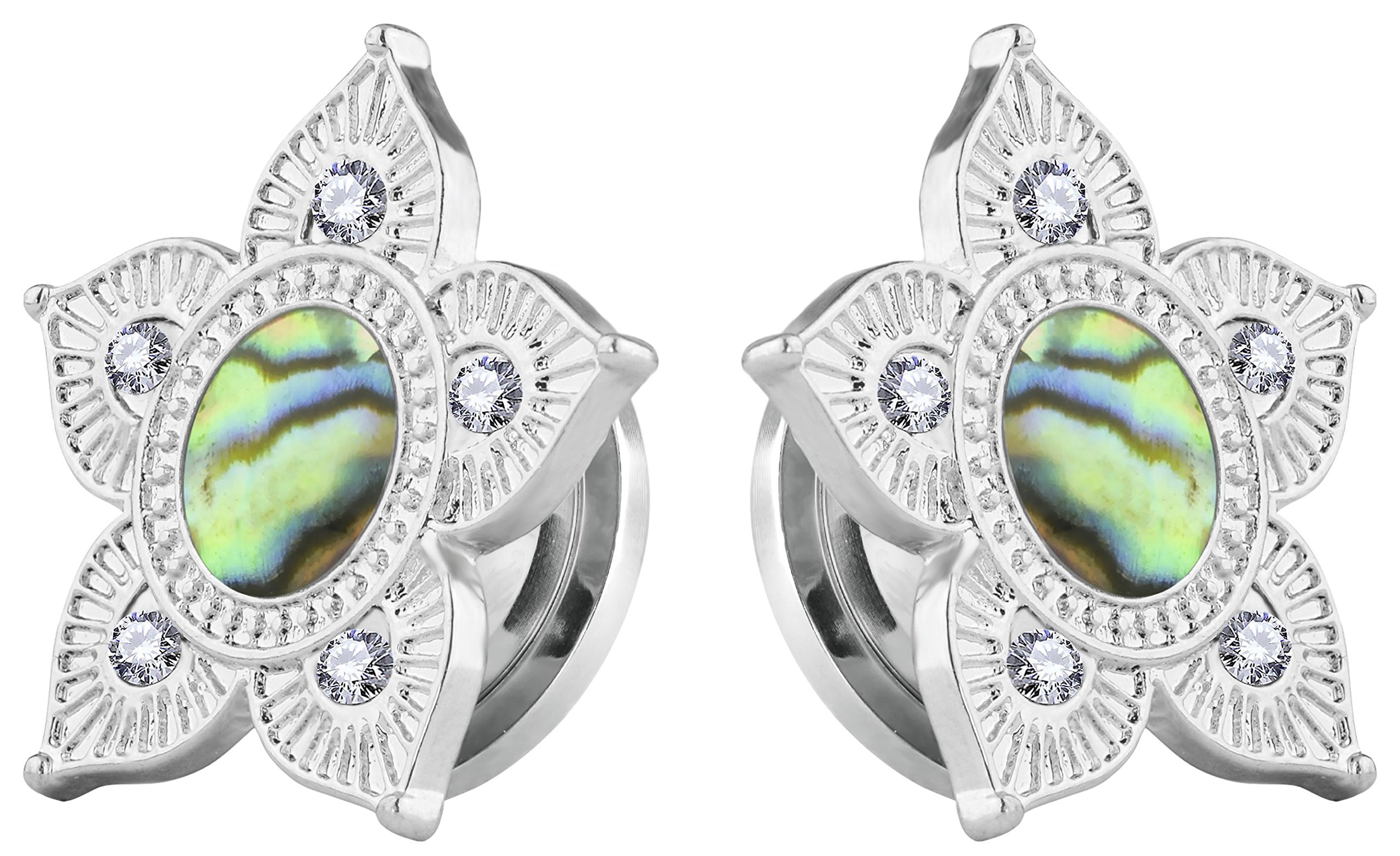Forbidden Body Jewelry 8G-5/8 Surgical Steel Abalone Shell Center Flower Screw Fit Tunnel Plug Earrings