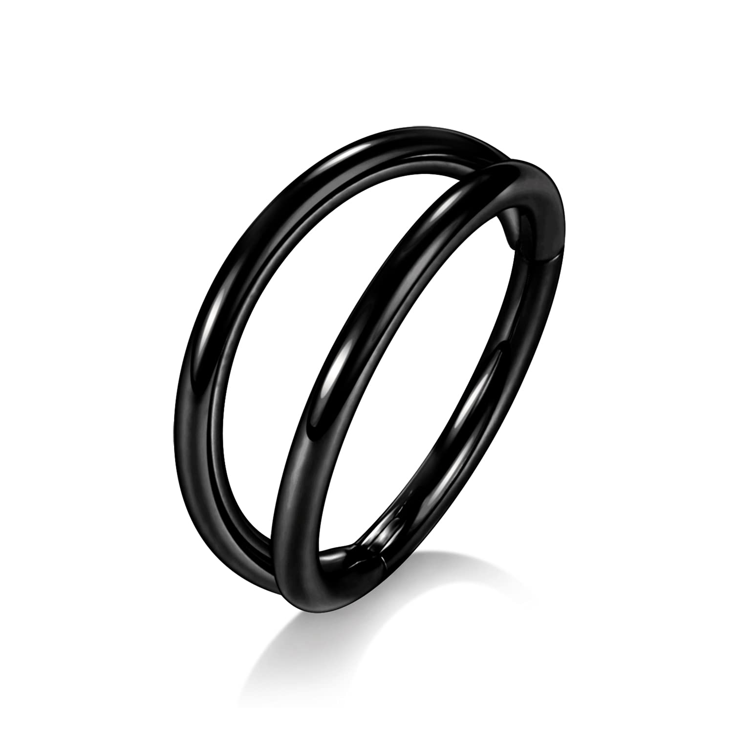 【Classic Design】:Double nose hoop for single piercing,simple but edgy at the same time.Simplicity designs are perpetual and complement any other style studs in ear without overpowering it 【Hypoallergenic】:Biocompatible and great for people with sensitive skin, our nose rings hoops undergo ri