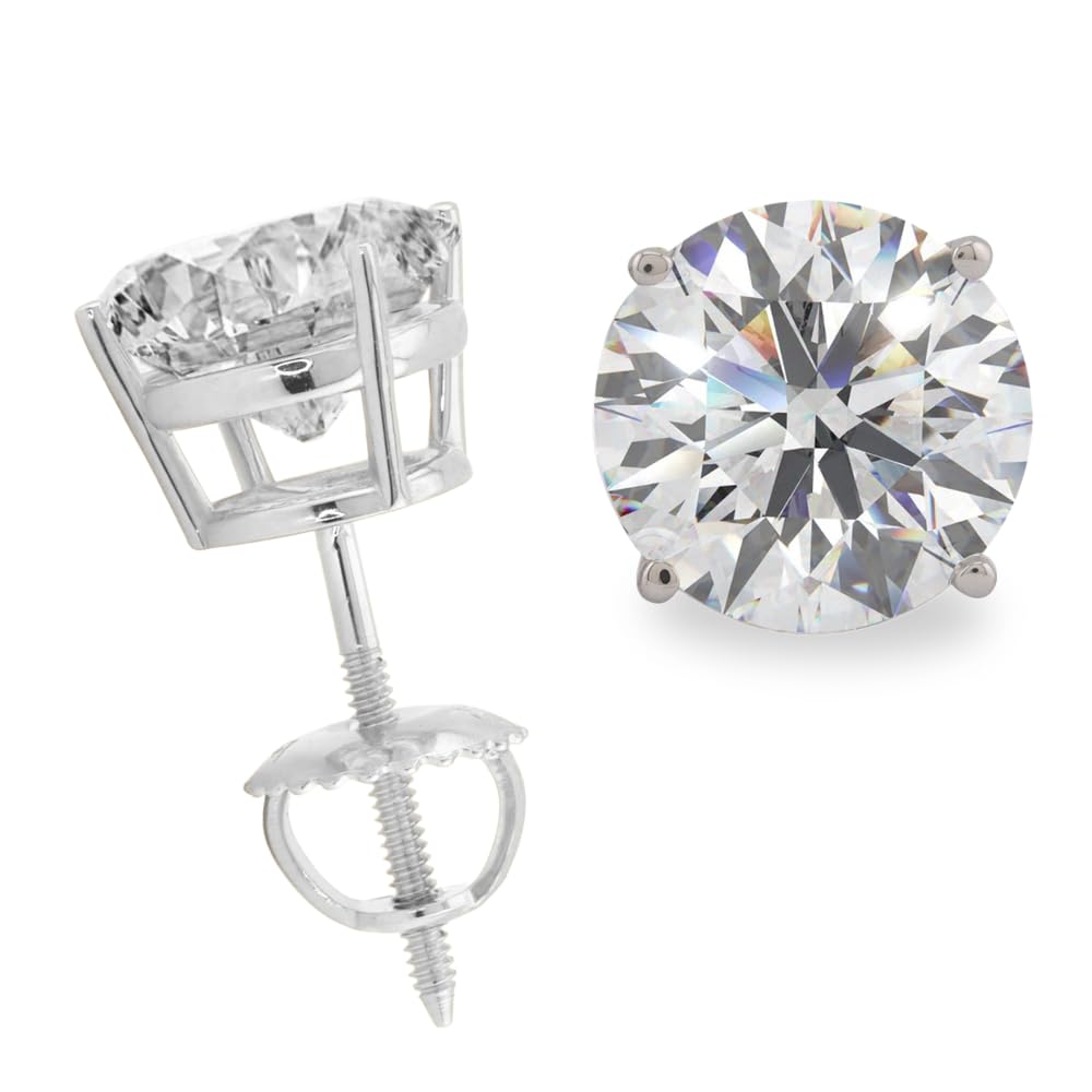 14K Solid Gold Lab Grown Moissanite Round 4-Prong Stud Earrings for Women | White & Yellow Gold | Push Back & Screw Back | Hypoallergenic | Made in