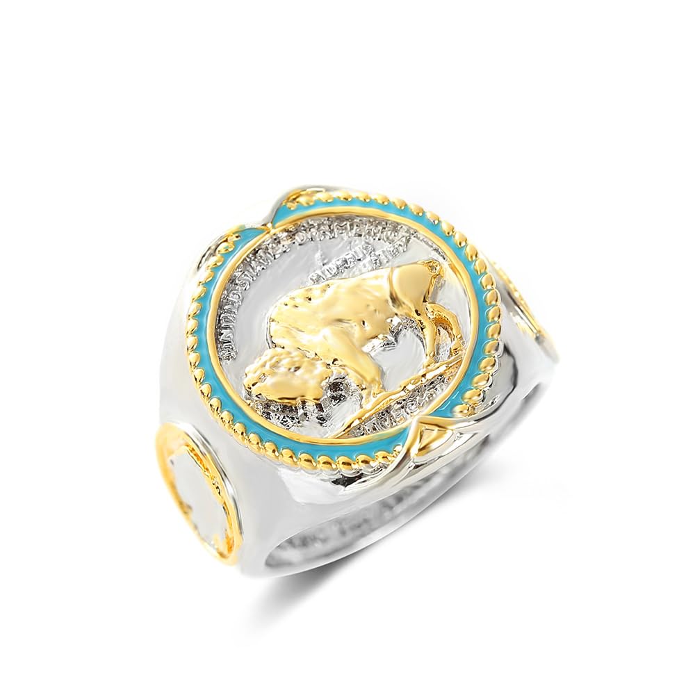 Buffalo Nickel Ring for Men - Indian Chief, Viking Bull, Amulet, Retro Buffalo Totem, Honoring The American West Alloy Coin - Animal Jewelry for