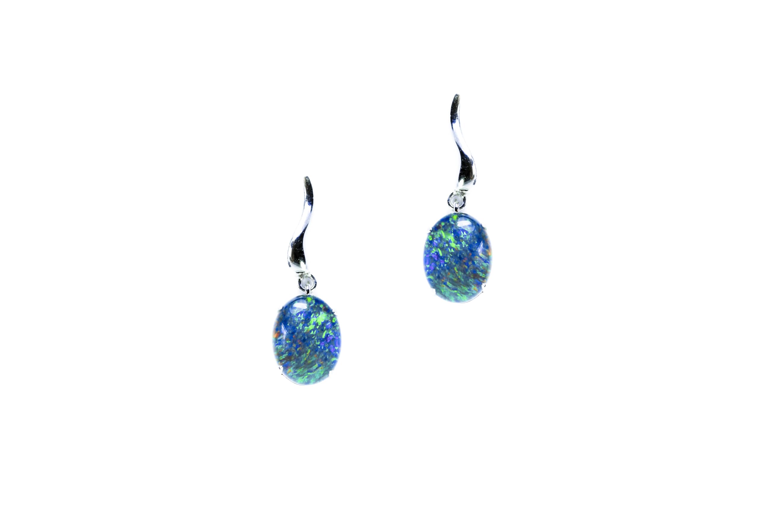 Australian Triplet Opal Earrings - Genuine Australian Triplet Opal Earrings in White Gold Plated on Sterling Silver Women's Jewelry…