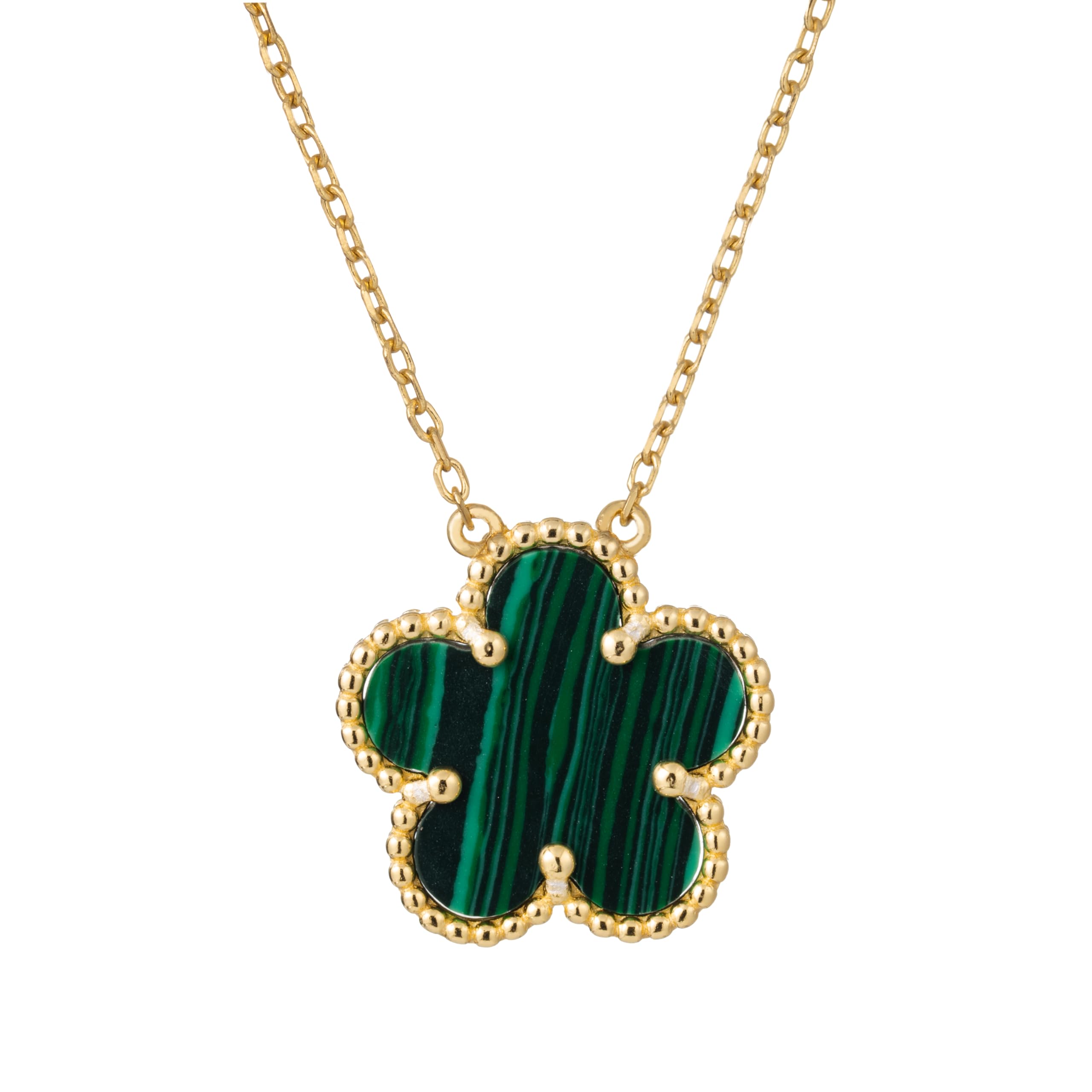 925 Sterling Silver 14K Yellow Gold Plated Hawaiian Plumeria Clover Flower Motif Beaded Necklace Pendant 16" + 2" Adjustable Chain, Nickle Free