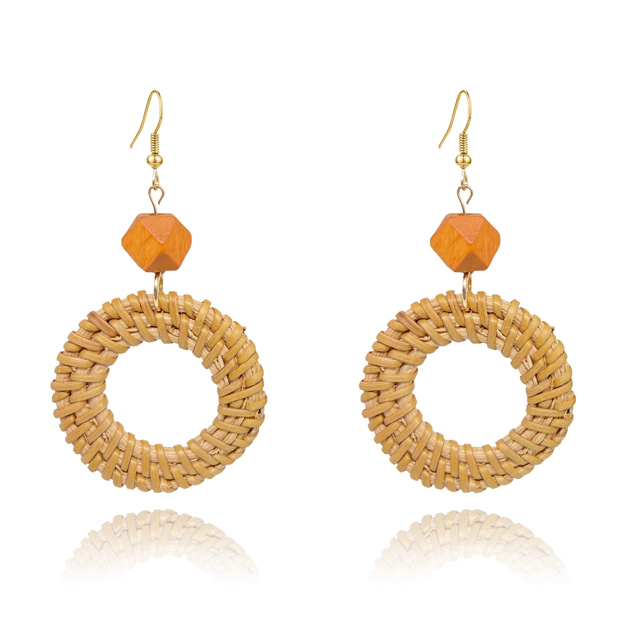 EXQUISITE DESIGN: Beautiful straw wicker earrings set, rattan earrings in different shapes, each pair of rattan earrings are handmade and carefully designed to meet your different needs and make you more attractive RATTAN MATERIAL:These bohemian straw wicker earrings are made of rattan fiber, which