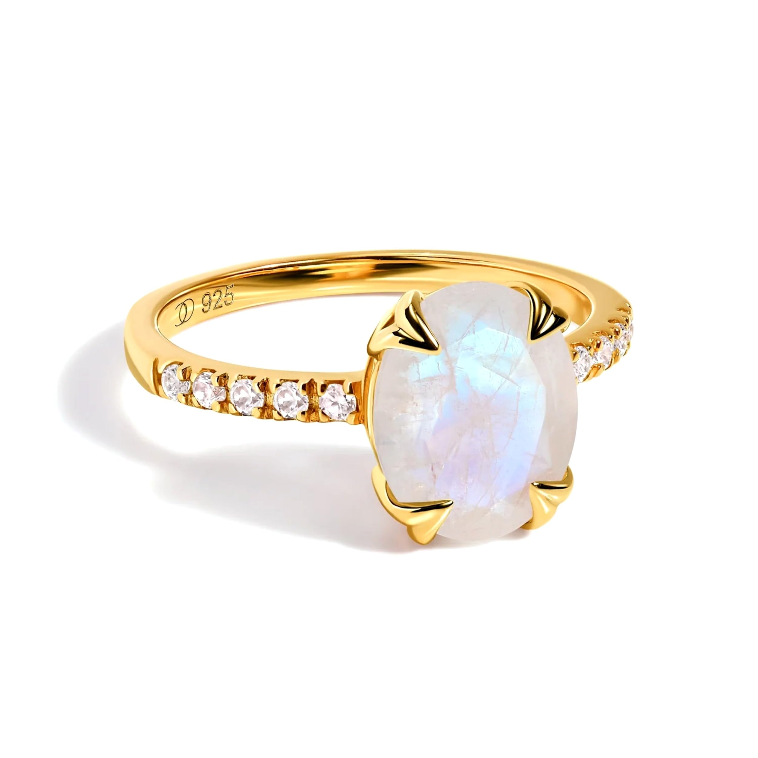 Moon Magic | Authentic Rainbow Moonstone Ring, Rose Quartz, Obsidian, Multi Color/Real 925 Sterling Silver | 18k Rose Yellow Gold Birthstone Rings for