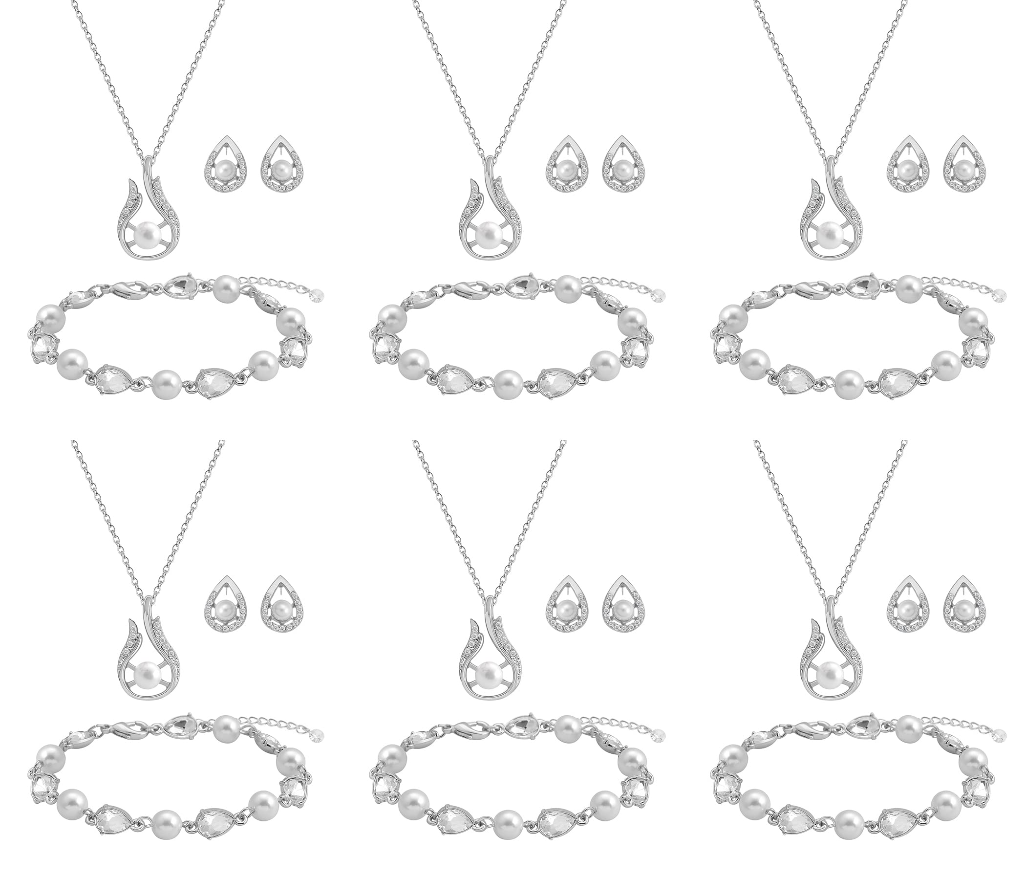 SPRJF Bridesmaid Jewelry Set for Women 18K Gold & Silver & Rose Gold Plated Teardrop Pendant with Pearl Necklace Earrings Bracelet Set,Bridesmaid Gift