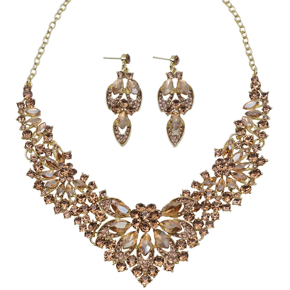 Zthread Women Jewelry Set Rhinestone Crystal Statement Necklace Bride Rib Choker Necklace Floral Beaded Collar Neklcace Cluster Dangle Earrings Set