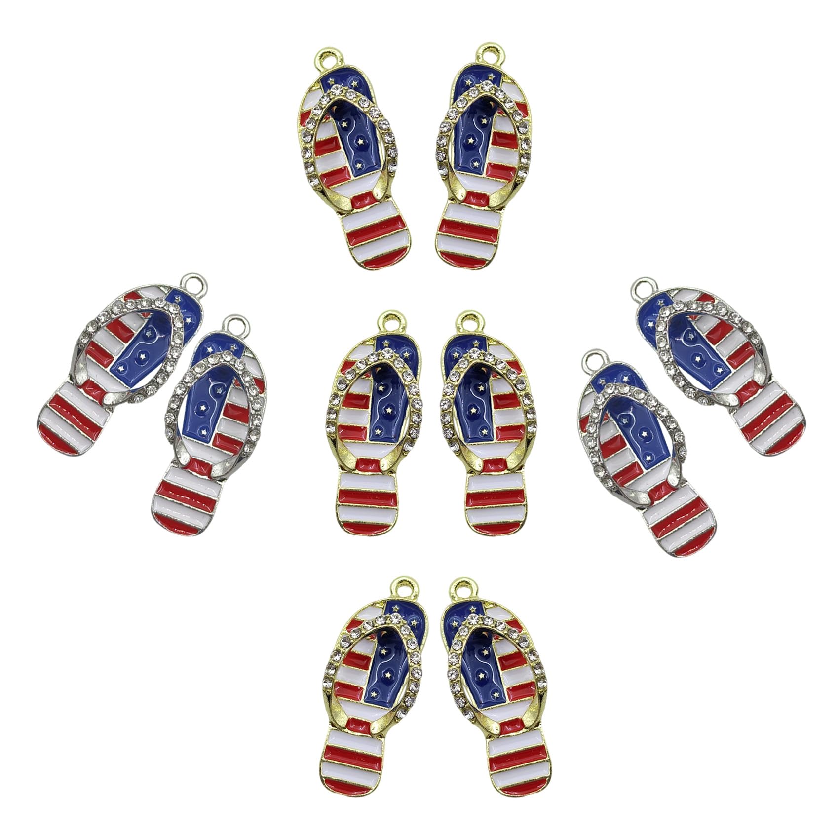 Ginyrerd 10 Pcs American Flag Flip Flop Charms, Patriotic Earring Pendants, July 4th Independence Day Gifts for DIY Necklace Bracelet Keychain Crafts