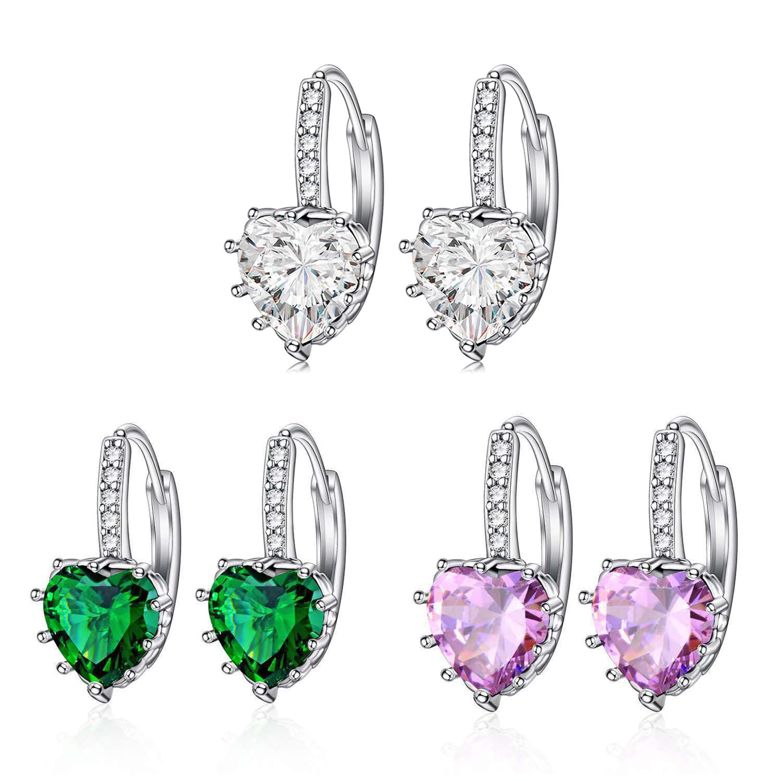 3 Pairs Heart Cubic Zircon Earring Leverback For Women Heart Dangle Earring Hypoallergenic Leverback Earrings for Women Birthday