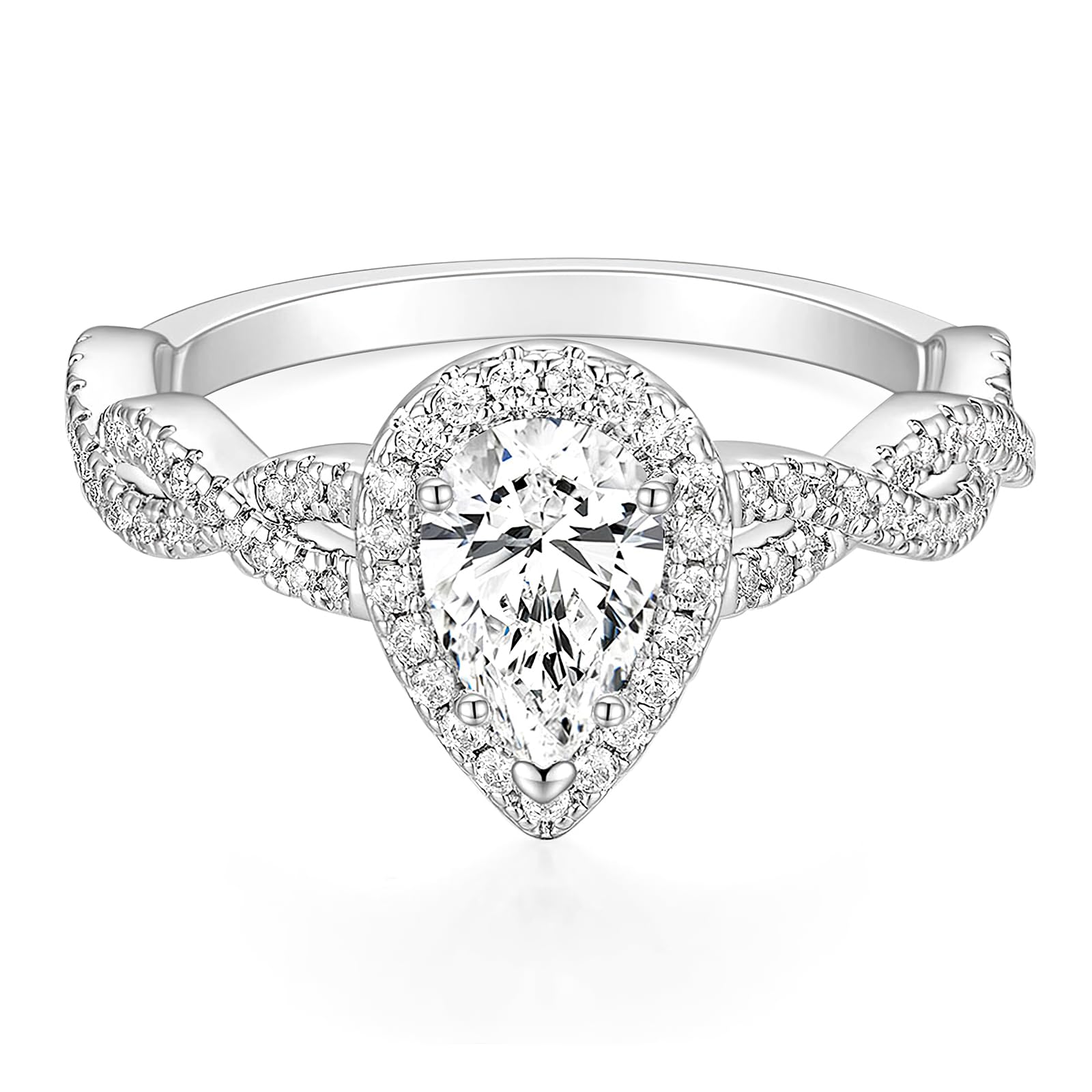 TWISTED HALO & TEARDROP DESIGN: This women’s engagement ring showcases a timeless pear‑shaped center stone surrounded by a sparkling halo, paired with an elegant twisted pave band 5-PRONG SETTING & EXQUISITE INLAY: 5-prong fixed center stone for anti-falling, 1pc 6*9mm teardrop cz stone, 60 pcs