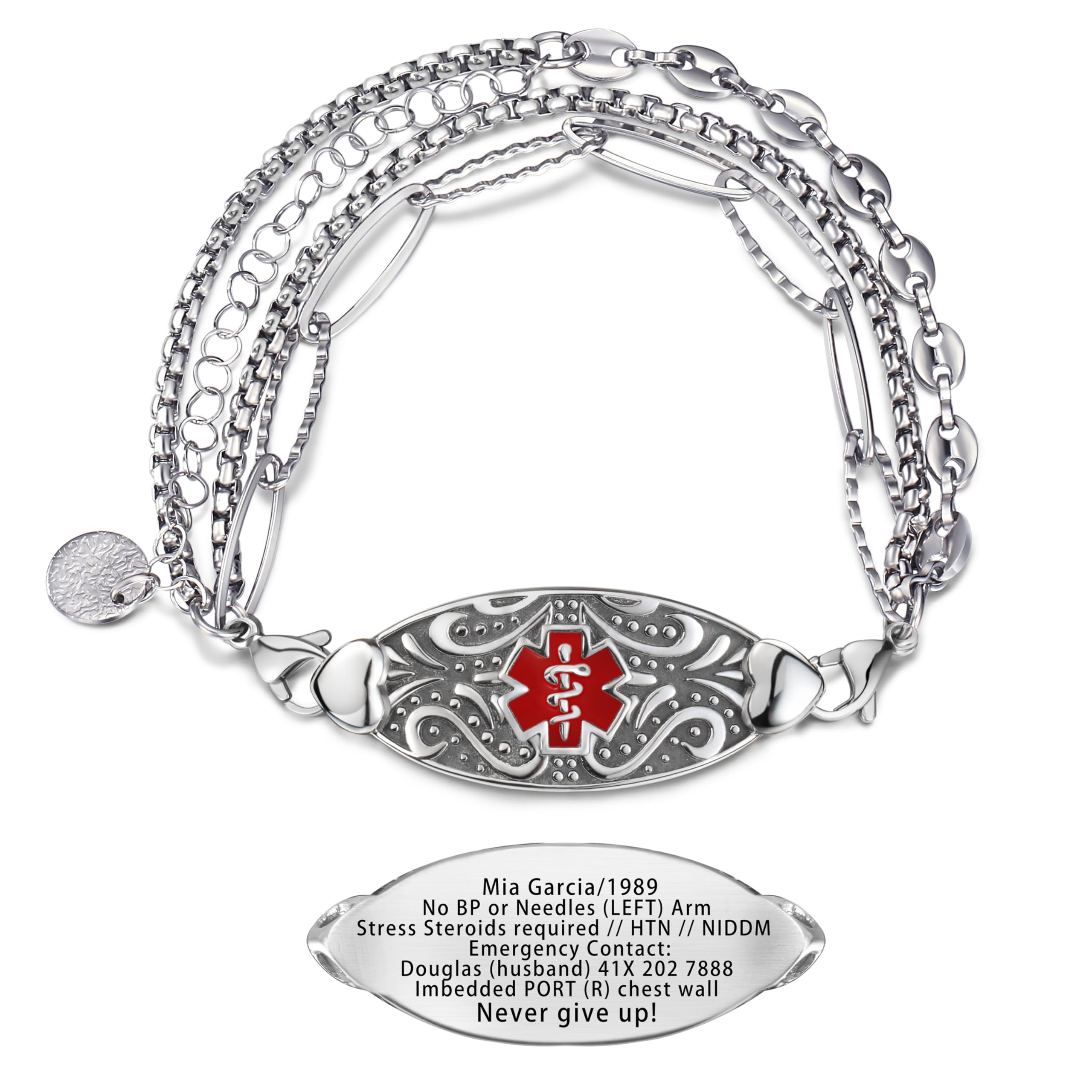 High-Quality Materials and Comfortable Wear: This premium medical alert bracelet for women is crafted from comfortable and durable stainless steel, making it a long-lasting and hypoallergenic women’s medical ID bracelet. Waterproof, rust-resistant, and skin-friendly, this stainless steel bracelet