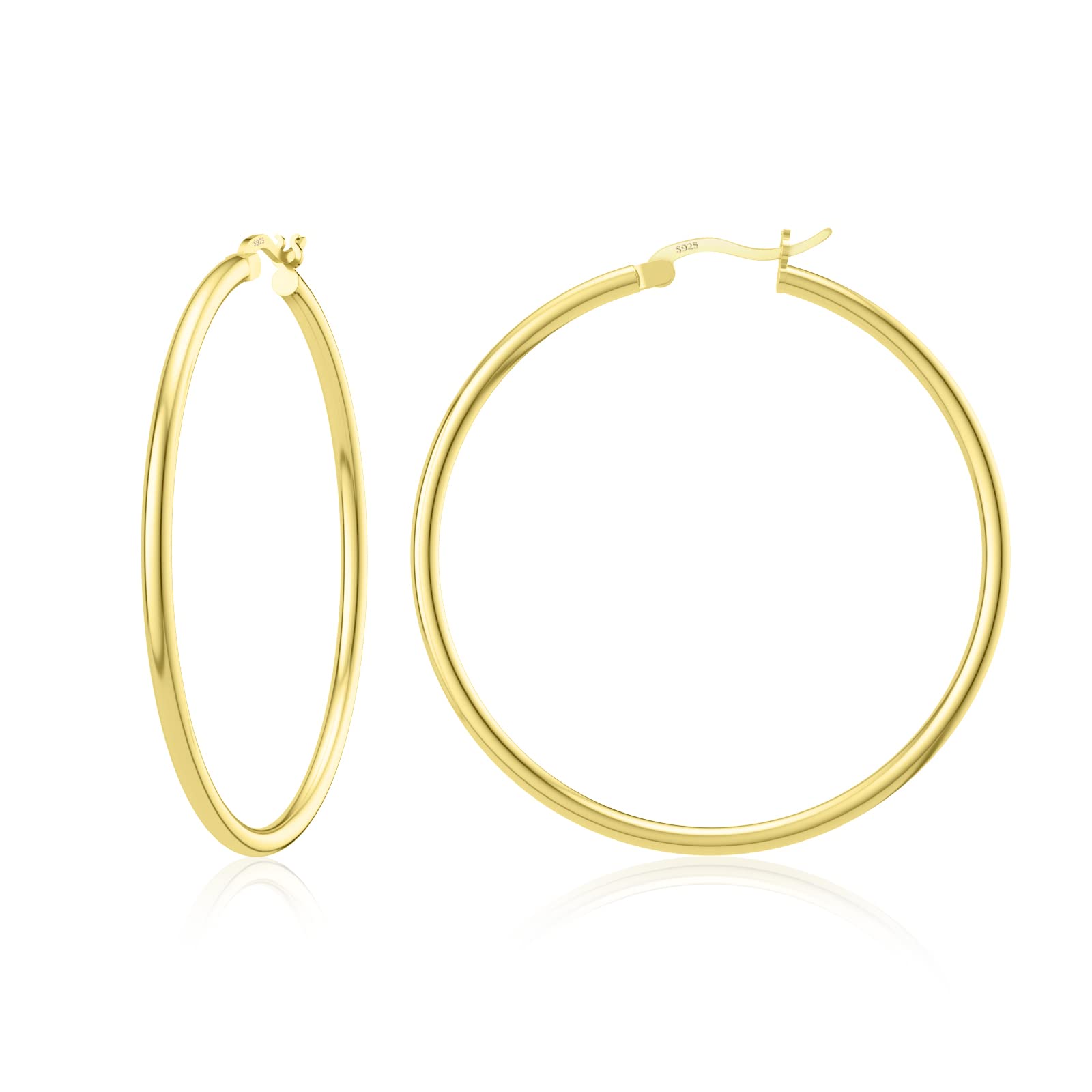 Hypoallergenic Earrings: The earrings posts and body are ALL made of 925 sterling silver with 14K gold plated, high polished, which will keep shining for a long time, no fading, hypoallergenic earrings for women's sensitive ears. Gold Hoops Size: Inner Diameter: 1.5 in/40 mm, Thickness: 0.07 in/2 mm