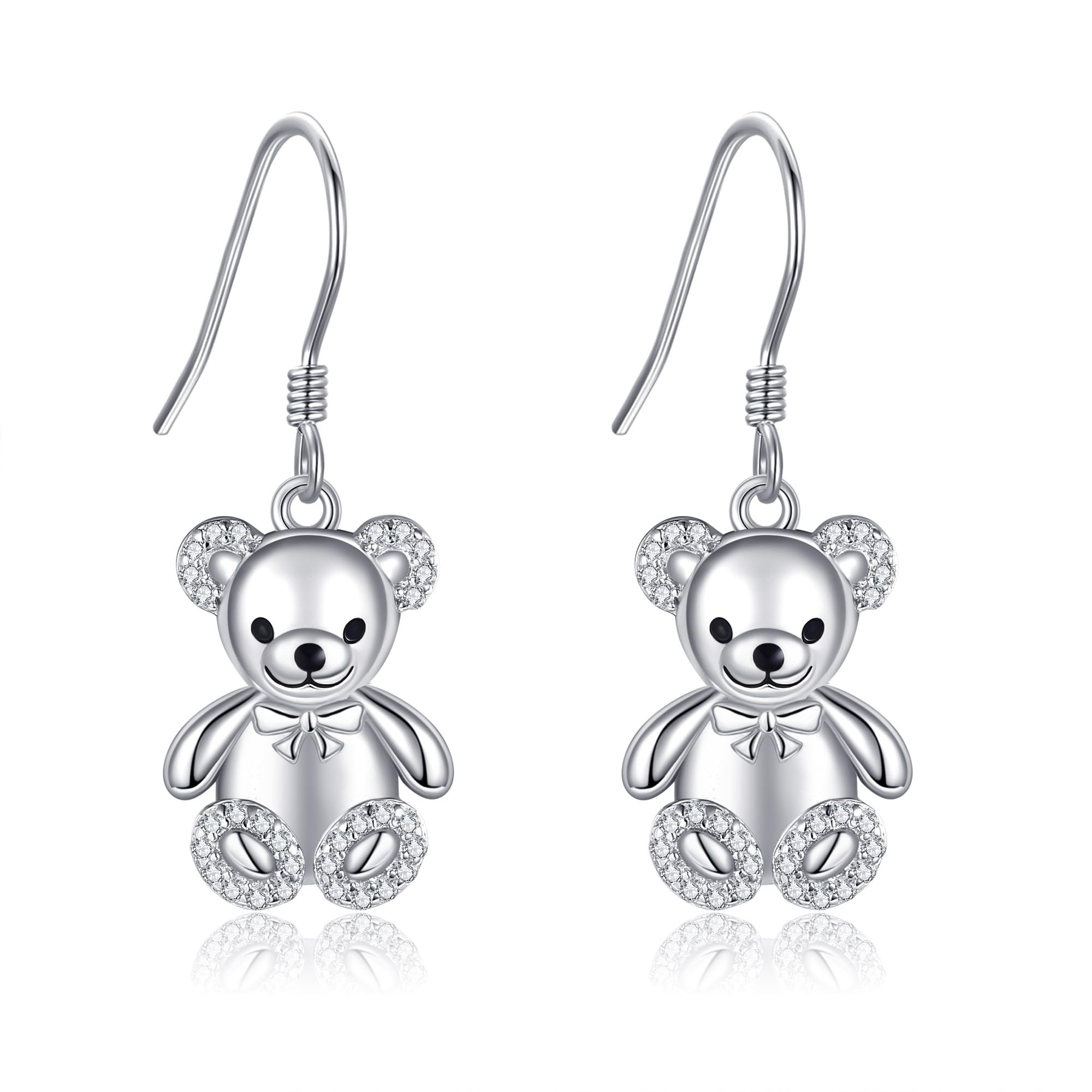 【DESIGN】Teddy bears are almost everyone favorite!We disign this silver teddy bear earrings with bling CZ for those who love teddy bear.Hope the cute teddy bear bring you happiness,luck and company. 【MATERIAL】 925 sterling silver bear earrings with cz, hypoallergenic,tarnish resistant,nicke